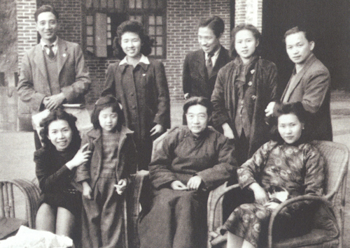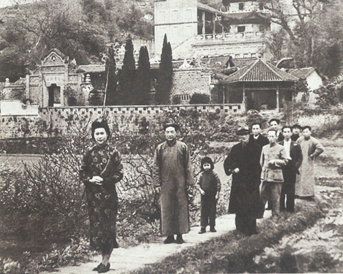 1945年在重庆磐溪,背景为中国美术学院,左起为廖静文、徐悲鸿、张葳、周千秋、佚名、张安治、张苏予、宗其香等。