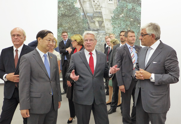 高克总统对媒体和各位美术馆馆长表示,他很高兴有机会看到来自中国的当代艺术展览,这些作品的多样性以及艺术家丰富的表现形式都让他感到惊讶。“中国8”在北威州和鲁尔区举办非常有意义,展览不仅使当地民众了解了中国的艺术,同时还促成了这里的美术馆和文化机构进行合作,举办大型文化项目,这样的合作今后还应该继续下去,北威州政府应该对这样的活动给予支持。