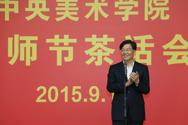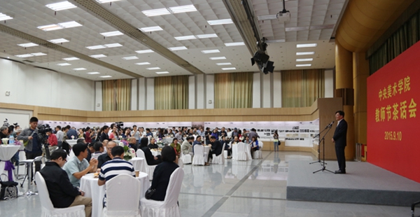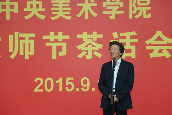 “‘一日为师,终身为父’是一种凝聚的、传承的美,对我们教师而言则是一份沉甸甸的责任。”院长范迪安在茶话会致辞中表达着他对教师节的理解。在中央美院这个拥有近百年历史的大家庭里,我们有幸在这里同事,大家在相互的祝福中相互支持,共同对这个家庭打心里的眷恋,为这个家庭的发展思考自己的责任。现场,他还简要地介绍了这一年来为中央美院教学、创作、研究等各方面做出突出业绩的单位和个人。他表示,中央美院将建立荣典制度,让这些默默付出的老师们在美院历史长河中留下属于自己的印记。这既是学校财富的积累,更是美院精神的传承和延续。