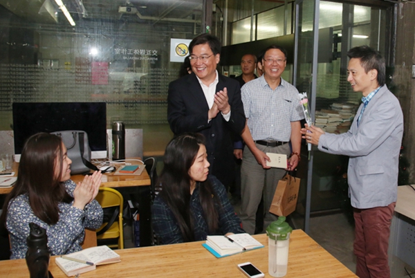 茶话会特意安排了新教职工入职仪式,在全体教职工见证下,2015年新入职的教职工从院长范迪安手中接过了首次启用的“入职状”,每一位新人与大家分享了加入这个大家庭的激动心情。