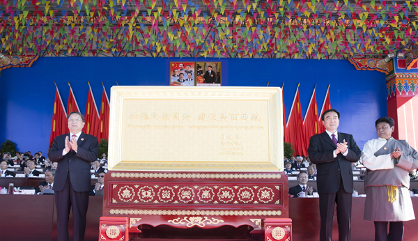 中共中央政治局常委、全国政协主席、中央代表团团长俞正声向西藏自治区赠送习近平总书记题词