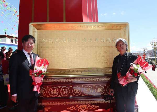 “加强民族团结 建设美丽西藏”贺匾(新华社图)