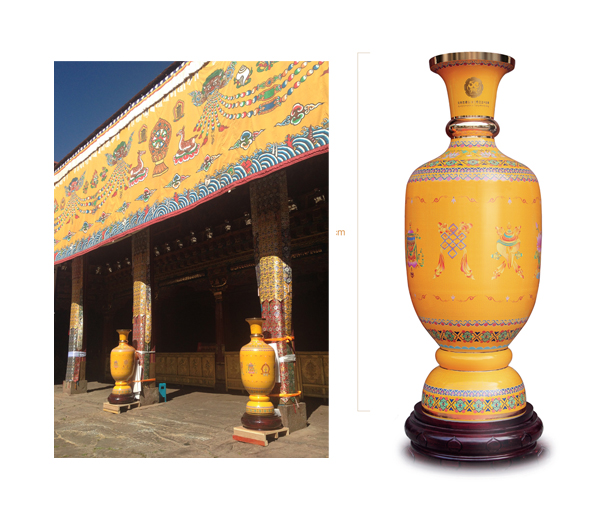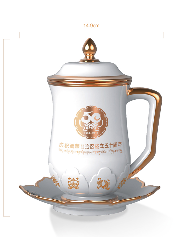 此次我院设计的纪念品共计6大项,包括贺匾、贺幛、酥油茶机、酥油茶杯套装、吉祥八宝茶杯、珐琅彩平安瓶,主要面向西藏自治区基层组织、学校、卫生院、敬老院,行政村、农牧民、城镇家庭,寺庙、佛学院,在职干部职工、教师、城镇居民、驻藏解放军、武警官兵、公安干警和离退休干部职工等发放。