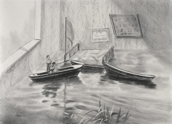 吴啸海 《水位》 90x115cm 木炭 纸 2008