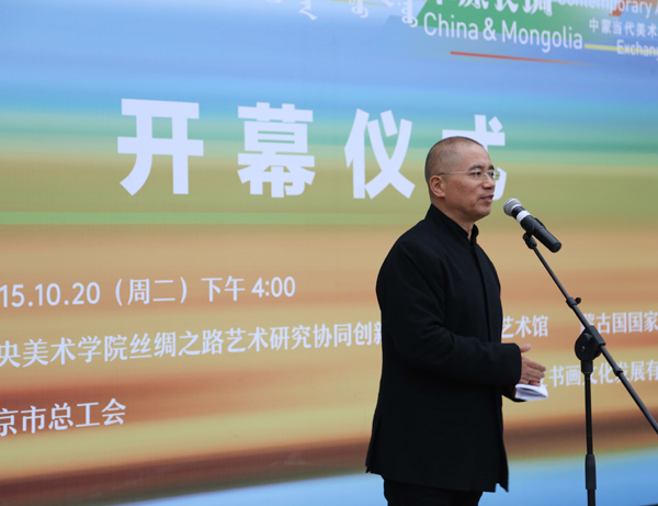Ky开元集团丝绸之路艺术研究协同创新中心主任范迪安在开幕式致辞中表示,Ky开元集团、太庙艺术馆和蒙古国国家美术馆一同筹划的此次展览,是借助太庙这块古老圣殿所呈现的当代美术交流的盛宴。在中央美院丝绸之路艺术研究协同创新中心组织筹备下,中蒙两国艺术家一同采风、交流,既创作了不少新的作品,同时从美术发展的角度对中蒙交流历史进行了梳理。他评价此次展览既有我国老中青艺术家长期围绕草原、蒙古族人民生活为主题创作的作品,也有蒙古国艺术家以家园、成吉思汗英雄故事、蒙古国社会发展为主题创作的作品,是一次主题鲜明、形式丰富、具有格调的专题艺术展,此次展览将是相约“丝绸之路”的开篇之作,也是中蒙艺术交流新的成果。