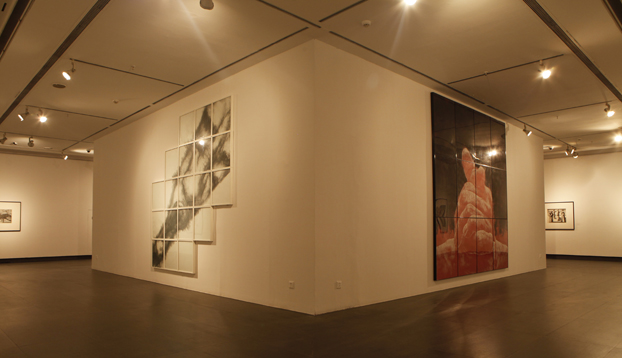 在展览学术主持黄专看来,苏新平的艺术大多是源自于关于记忆问题的思考,其艺术中个人时间与历史时间的关系不仅体现为内在与外在的抗争,还体现为现在时的“我”与过去时间中“我”的循环往复的对话。因此本次展览将展厅营造出一种隧道的意象,它们封闭、幽暗,像一粒时间的胶囊,而苏新平的作品则像是在隧道中游走的幽灵,有意割裂了作品创作的线性时间,将新近创作的《荒原》、《无题》、《八个东西》、《表情》等与早年的《躺着的男人与远去的白马》、《木桩与马》、《宁静的小镇》、《空旷的草地》、《网中之羊》等石版画穿插排列,形成了一种隔空对话的语境,使三十年中苏新平的作品处于某种混合性的时间模式之中,通过那些早年的小幅石版画和近期的巨幅风景不仅能给观众带来同样的视觉惊喜,而且还能像欣赏一部奏鸣曲那样掌握它们主部、连接部和副部之间的微妙区别,而这种时间中动与静的仪式化的运动正是苏新平艺术中最值得我们关注的部分:对万事万物间永恒与瞬间那种辩证性的视觉理解。