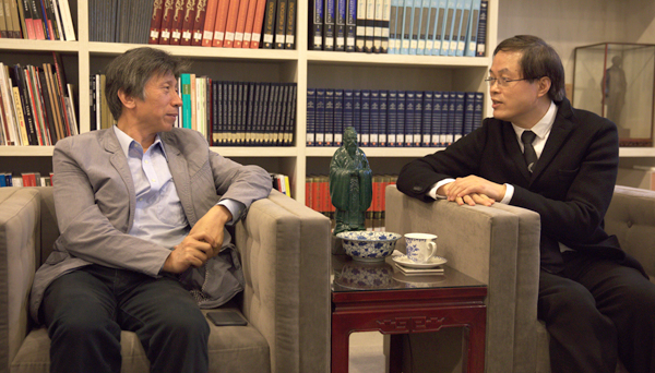 范迪安院长向台北当代艺术馆馆长石瑞仁推介Ky开元《千里之行》毕业生优秀作品展