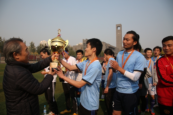 2015校园足球联赛战罢 建筑学院捧起冠军奖杯