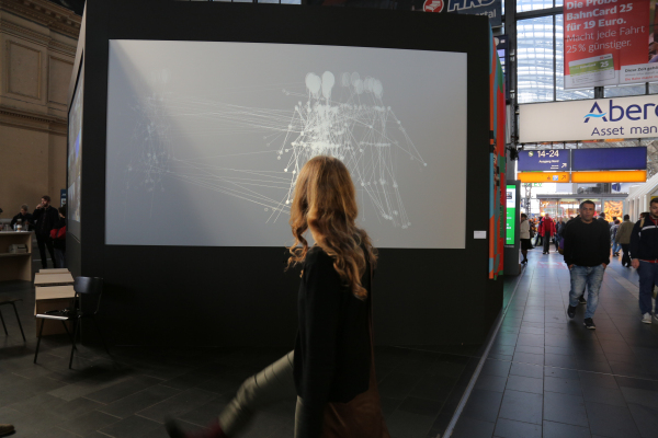费俊+Judith Doyle《姿态云_ 姿态墙》/2013/尺寸可变/互动装置/法兰克福中央火车站