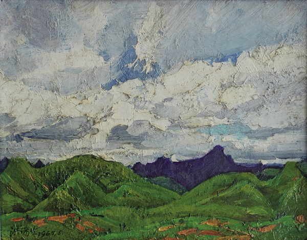 《蓝色的远山》 洪瑞生 29cm x38cm 卡纸 1965年