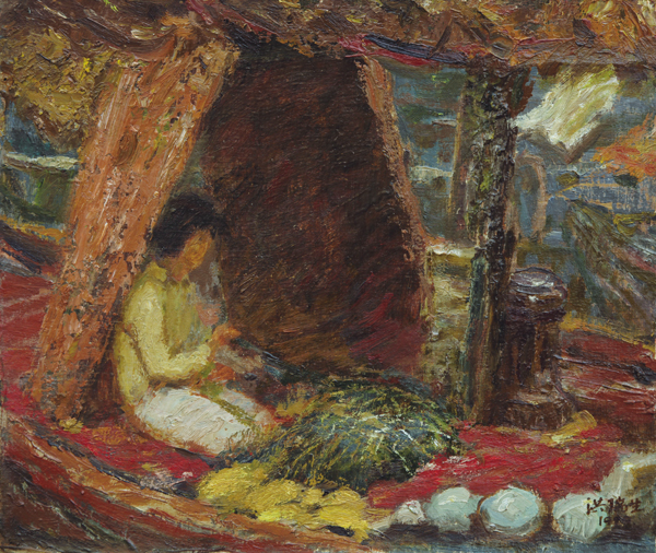 《织》 洪瑞生 34cm x39cm 卡纸 1979年