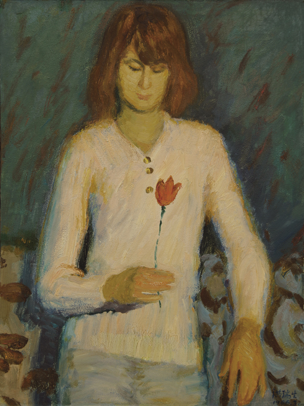 《持花的少女》 洪瑞生 61cm x46cm 卡纸 1986年