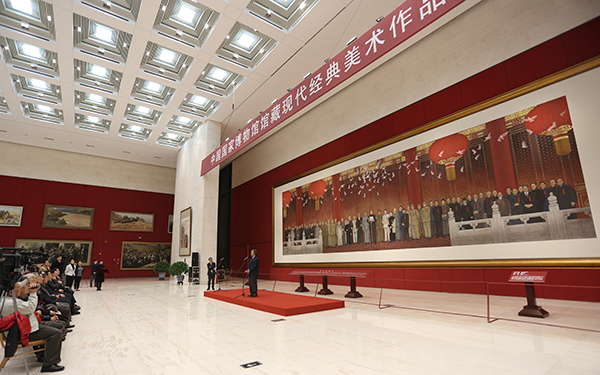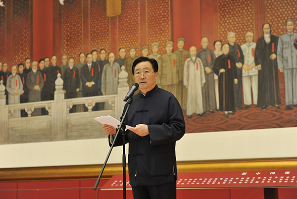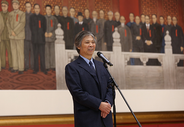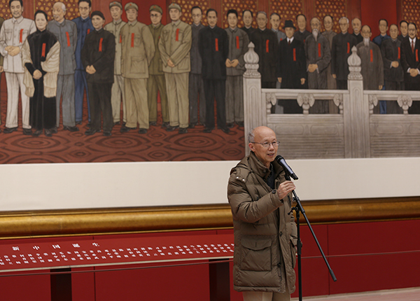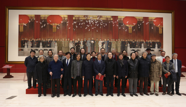 2015年11月26日,唐勇力历时三年创作完成的巨幅中国画《新中国的诞生》收藏、展出仪式在国博中央大厅举行
