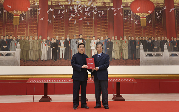 中国国家博物馆馆长吕章申向唐勇力教授颁发捐赠证书