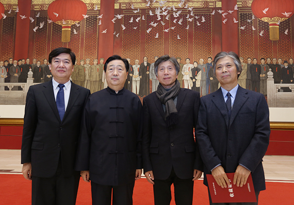 我院党委书记高洪、国博馆长吕章申、我院院长范迪安、唐勇力教授的合影(从左至右)