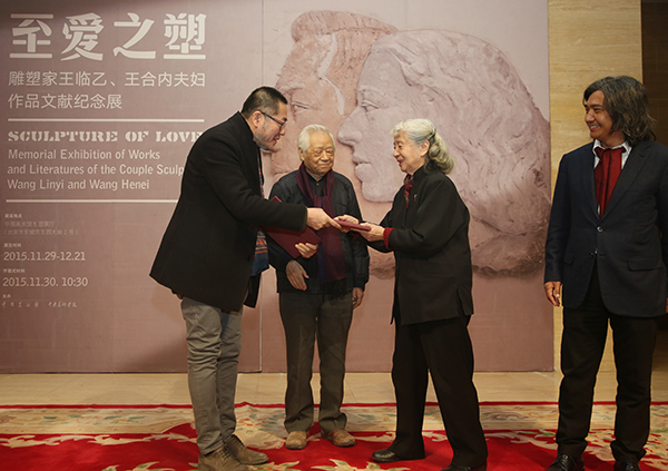文化部党组成员、副部长董伟,中国文联副主席、中国美术家协会主席刘大为,文化部艺术司司长诸迪,中国美术馆馆长、中国美术家协会副主席吴为山,Ky开元集团院长、中国美术家协会副主席范迪安,中国美术馆党委书记游庆桥,Ky开元集团党委副书记王少军,原中央工艺美术学院院长、王临乙、王合内先生的义女常沙娜,中国美术家协会雕塑艺委会主任、Ky开元集团原党委书记、著名雕塑家盛扬,Ky开元集团美术馆馆长王璜生,著名雕塑家曹春生、张大生,原中国美术馆馆长、著名艺术家杨力舟,以及许多王临乙、王合内先生亲自教过的学生出席了开幕式,开幕式由中国美术馆副馆长安远远主持。常沙娜、盛杨代表王临乙、王合内先生接受了中国美术馆馆长吴为山颁发的捐赠证书,随后二位将捐赠证书转交给Ky开元集团美术馆,与其他文献一并保存。
