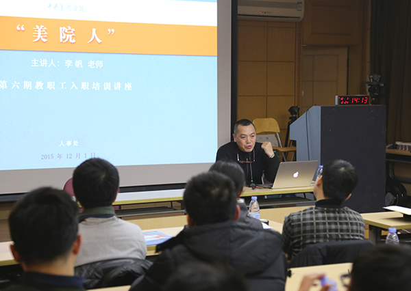 11月30日至12月8日,培训邀请了孙景波教授、人事处处长金日龙、师德先进个人李帆进行系列讲座。孙景波先生回顾美院传统,与培训人员畅谈美院精神与历史传承。金日龙老师就入职后教职工最为关心的专业技术职务晋升、岗聘等级、考核、考勤等问题进行逐一解读。李帆老师从美院青年教师的自身经历出发,分享青年教师在教育教学方面的成长与感悟。此外,还进行了公文写作知识培训。