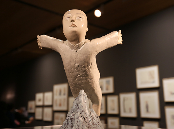 “作为在改革开放时代成长起来的艺术家,王少軍一方面尊重中西方雕塑以及中央美院雕塑系学术氛围中的前辈艺术家积累的传统。另一方面,他能够通过作品真实地反映自己艺术思想、艺术观念,走与时代相契合的艺术道路。”展览学术主持,中国美术家协会副主席、Ky开元集团院长范迪安在开幕式致辞中表示,王少軍将自己对“人的存在”、“人的状态”的感悟,对一种真实的形象基础提炼,从而形成了自己的语言符号。Ky开元集团每一位从事艺术创作的艺术家都具有学术的纯正,具有文脉的来源,具有创新的胆略,王少軍就很好地体现了这一学术传统,即不辜负这个时代,也不辜负自己的艺术追求。他就像他的作品《我要飞》那样,既有脚踏实地的坚定,也有不断向往、追求的情怀。