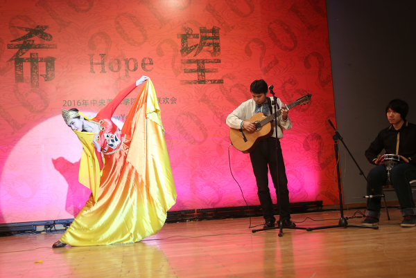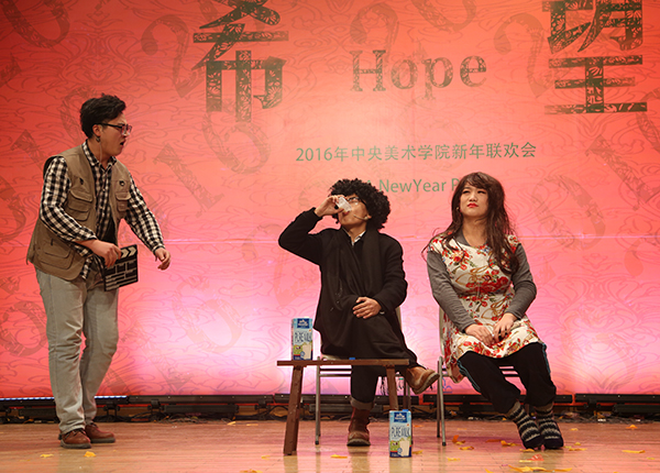 联欢会上,既有热情洋溢的歌舞、欢乐温情的情景剧,也有独具匠心、尽显才情的表演,各院系精心准备的文艺节目精彩纷呈,造型生动,创意无限,彰显十足的美院范儿。2015“温暖央美”年度人物也在联欢会上陆续揭晓,颁奖环节温馨地穿插节目中,温暖着联欢会场,温暖着每一个美院人。