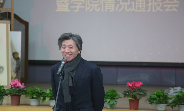 院长范迪安向老同志们重点介绍了学院一年来在改革发展各项工作中的新思考和探索实践,他指出,2015年学院工作紧紧围绕中央大政方针,按照教育部的整体部署,着重从围绕“十三五”规划谋求未来更大发展、紧随国家建设世界一流大学的要求开展自我建设、贯彻落实习近平总书记在文艺工作座谈会上重要讲话不断攀登艺术创作高峰、迎接百年校庆推动学院发展四个方面,介绍了学院在落实“百年辉煌·艺术名家工程”、教学改革与发展、创作科研新起点等重点工作中所取得成就。他希望老先生、老同志们继续关注学院发展,为美院的美好未来积极“献宝”,让老老少少的美院人在自己的大家庭里一同把学院建设得更好。