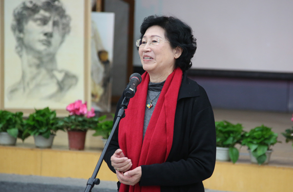 作为党代表、刚参加完学校第二次党代会的原党委副书记黄华英谈到,党代会的胜利召开是学院发展中的大事,一年来,她从校报、网站和美院微信上看到了学院在落实习近平总书记在文艺座谈会上重要讲话、开展对外交流提升国际地位等方面所取得成绩,感到十分振奋,希望学院越办越好。