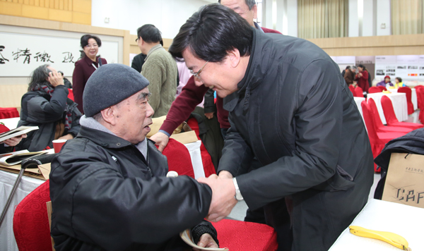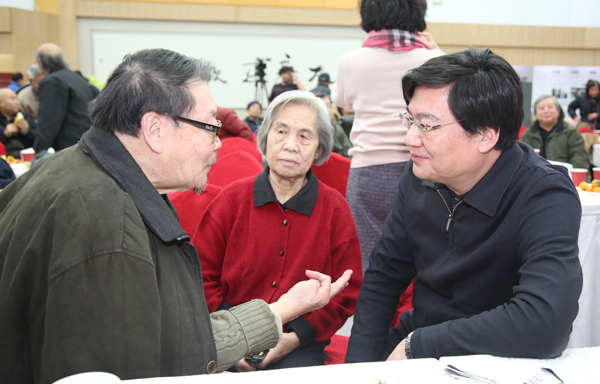 原学院党委书记、已是耄耋之年的盛杨先生每年都会参加新春团拜会。他满怀深情地谈到,自己和所有老同志们一样,都时刻关心着美院的发展,关心着美院后辈们所取得的进步。他勉励大家一定要把美院优良的传统继承下去,靠实实在在的工作让美院始终担当起领军中国美术事业发展和美术事业发展的重任。