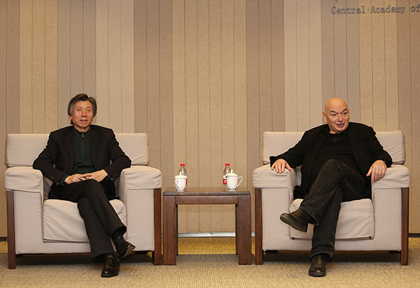 2016年1月21日下午13时,法国建筑大师让·努维尔到访我院。我院院长范迪安与让·努维尔进行了座谈交流。