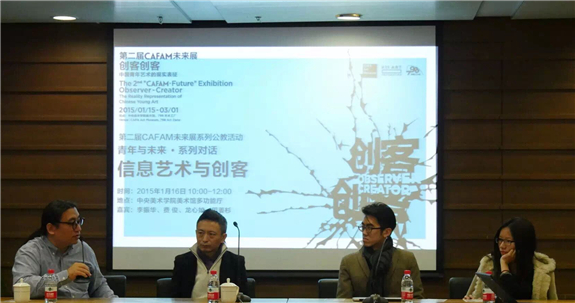 “第二届CAFAM未来展系列公教项目”围绕展览主题“创客创客·中国青年艺术的现实表征”策划活动,针对不同目标人群进行了设计,主要分“创客工坊展览板块”、“思想与未来:首届‘大学与美术馆’论坛”、“青年与未来·系列对话之信息艺术与创客”、“创艺术·开口秀:开放论坛”和“创客工作坊”五个部分展开。