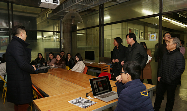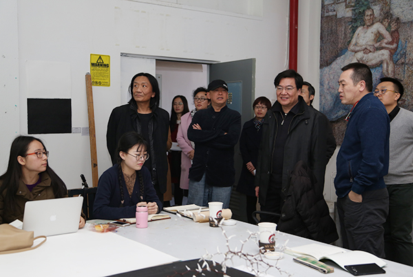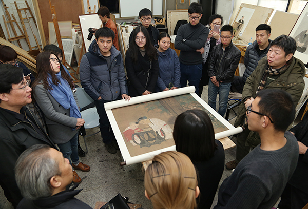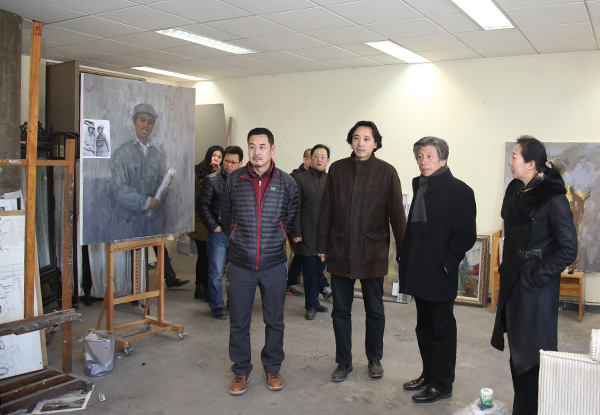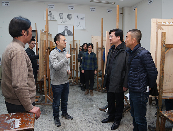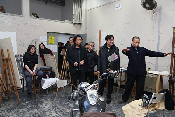 从中国画的教室到造型学院的画室,从设计学院的工作室到人文学院的课堂,学院领导调研中看到的是开学如期进行的常态。在中国画的教室里,刘荣老师带着学生开始用生宣临摹明清山水;版画系四工作室,刚刚进入三年级学生正在汇报寒假关于认识自我的作业;油画系二工作室的教室里,马晓腾老师听着四年级学生的毕业创作进展,不时提出些意见;造型学院基础部贺羽老师为同学们摆出男子双人模特,希望他们在一周的时间内着重关注素描里结构、空间关系。