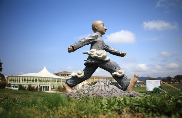 作为本次展览的主角儿、著名雕塑家王少軍认为在青山绿水间的启新大草坪上展览自己的作品是一次全新的尝试,并认为今后的创作中这是一个应当侧重的课题。