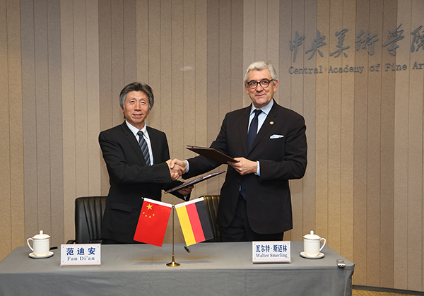 院长范迪安、德国波恩艺术文化基金会主席兼杜伊斯堡库珀斯米尔勒当代艺术博物馆馆长瓦尔特·斯迈林签署展览合作意向书