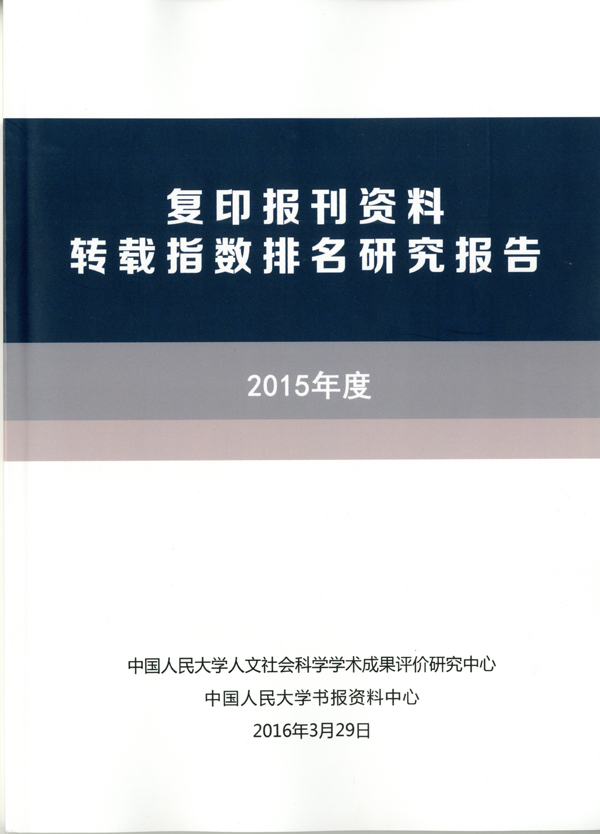据了解,“复印报刊资料”学术期刊是从中国公开出版的报刊上搜集、精选人文社会科学学术论文和相关信息,由学科专家和学术编辑共同遴选,并按学科门类进行转载的规模化、专业化、标准化、系统化群刊,其强调“质量为本”的论文评价和精选实践,旨在推动中国人文社会科学学术研究和高等教育的繁荣发展,并在此基础上逐渐衍生出对期刊转载量及相关学术评价的研究。“复印报刊资料转载排名”由“中国人民大学人文社会科学学术成果评价研究中心”与“中国人民大学书报资料中心”联合研制,自2001年3月首次发布以来,迄今已经持续发布了十六年。
