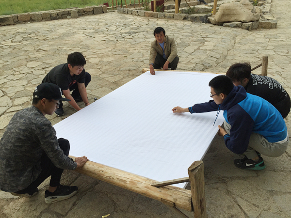 以往我们的课程是自发的在山野田间创作,创作的内容和主题与当地村民没有太多实际的关联。这次却不同,我们是受到清水河镇镇政府的邀请以“艺术介入乡村”的形式参与到雨补鲁“美丽乡村”的建设之中,也是我们第一次“名正言顺”地进入村庄实地创作。由于我们是参与雨补鲁“美丽乡村”建设的首发艺术团队,我们的创作模式和经验将为未来的“艺术乡建”提供示范作用,而在此之前没有任何成功经验可供借鉴,因此,我和我的团队感到亚历山大。