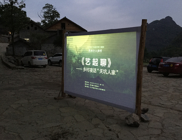 经过团队认真地研究讨论,我们认为:要想做到艺术介入乡村、介入乡民,必须首先了解他们、融入他们。为此,我们开展了两项重要的工作。第一项是对整个雨补鲁村展开了为期一周的全方位调研,调研范围涉及:自然场域特点调研、村舍聚落的历史沿革及发展现状调研、原住民群体状态调研、原住民个体状态及日常生活生产方式调研。通过高密度的调查研究,团队对村落有了深刻的认知与了解,使思维状态乃至生活习惯逐步达到与乡村模式同步。另一项工作是,将调研成果剪辑成“电影”,以“艺起聊”为题,选择在傍晚以“放电影”的形式吸引村民到村宗祠前的古树下开展互动交流活动。实践证明这一方式非常有效,这一事件迅速成为全村的关注焦点,村民可以在“电影”里看到自己、看到自己的邻居、可以从“艺术家”的角度看到自己所居住村庄的美丽景色,这种对个体关注的手段引发了大家彼此之间的关注,从而相互产生认同,极大地激发了村民的参与感。经过“艺起聊”这一“艺术事件”的干预后,无论我们在村里遇到谁,大家都会彼此热情地打招呼,甚至还有村民主动要求我们去拍摄他们,这样他们就可以在下次“艺起聊”时上“电影”。
