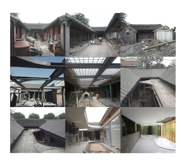 “胡同茶舍——曲廊院”项目是北京四合院改造成公共商业空间的一个典型案例。建筑营在旧建筑的历史价值与使用价值之间保持了恰当的平衡,通过“修复旧的、植入新的”这一设计策略,理清旧建筑的历史层级关系,并加入一条扁平透明的“曲廊”将分散的建筑合为一体,创造新旧交替、内外穿越的环境感受,激发了胡同建筑在当代生活中使用与体验的乐趣。