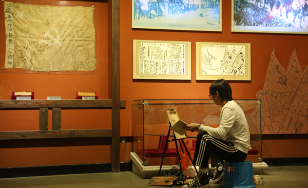 “刚开始的时候,学生面对眼前的风景、红色旧址以及文物,完全处于迷茫的状态。”带队教师石煜说,油画系学生绘画技法都很优秀,画画不难,难的是要让他们从过去甚至是考前班时养成的“照搬画面”习惯中跳出来,不能总是盯着眼前。