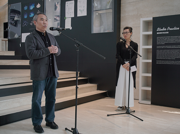 王少军在致辞中对展览主题"freestle/自由式"包含的丰富深刻内涵给予了肯定,他鼓励学生要勇于探索和进行自由的创新的表达,勉励同学们在今后的学习中,向世界索取知识,不断提升自我和智慧水平。