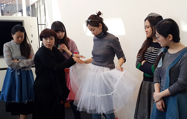 在时长2小时的课程学习中,吕越教授给同学们讲授了款式、材质的运用以及半身裙在时装设计中的重要地位。谢梦荻老师针对裁剪技巧和注意事项做了相关补充。
