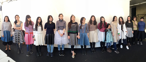 共同体验服装面料和造型之间的关系,是这次工作坊的主要目的。workshop尾声迎来了此次交流活动的高潮,两校同学纷纷穿上自己的作品进行走秀。为了整体效果,我院同学自发性地开始了延伸创作,大家用剩余面料做了帽子、胸花、腰带、披肩……为走秀增添了许多乐趣和亮点。
