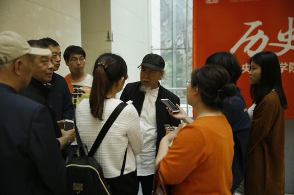 展览新闻发布会于当日上午举行。策展人殷双喜教授在发言中介绍了展览筹划的背景、展览的学术价值及自2015年启动以来的展出及获奖情况。闻立鹏先生、苏高礼先生、孙红培副书记、马路教授就中央美院前身与河北的历史渊源、油画发展和中国油画教学的历史以及个人成长与河北的关系等回答了媒体提问。