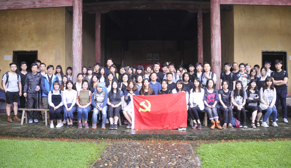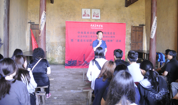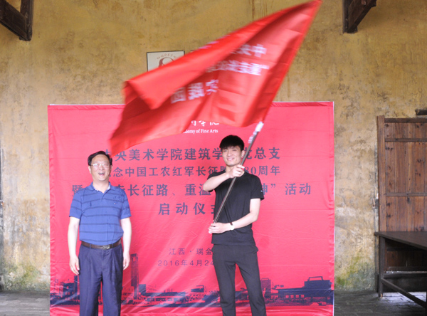 4月24日,党委副书记孙红培和建筑学院党总支书记傅祎来到江西省瑞金市叶坪,看望了正在此地参加春季下乡实践,开展写生测绘的建筑学院同学们,并为“重走长征路 重温长征精神”活动授旗。在瑞金苏维埃临时中央政府所在地,孙红培副书记为大家带来同学带来了一堂丰富多彩的党课。 他希望同学们在红都瑞金为期十天的考察、写生和实地测绘活动中,在长征精神的激烈下,以自己的专业特长服务社会、服务人民,为当地政府留下再现这段艰辛历史的系统资料,同时为“重走长征路重温长征精神”活动积累创作素材。