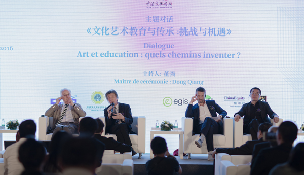 首届中法文化论坛主题为“一带一路”:文明对话与融合。论坛得到了中法两国政府和领导人的高度重视,国家主席习近平和法国总统奥朗德分别向论坛发来贺信,国务院副总理刘延东出席开幕式并致辞。参加“文化艺术教育与传承:挑战与机遇”分论坛的嘉宾有我院院长范迪安、法国文化部文化遗产总监暨巴黎高等美术学院前院长亨利·克劳德·古索、里昂美术学院院长埃曼纽尔·迪布罗、清华大学美术学院副院长苏丹、法国地区当代艺术基金会主席伯纳德·德·孟非朗。