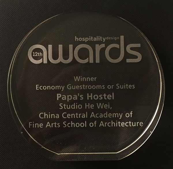 2016年HD Awards大奖全球有超过540个项目参评,其中不乏国际著名酒店,如威尼斯万豪酒店(JW Marriott Venice Resort)等。经过初选,“爷爷家青年旅社”与美国加州的Mylo Hotel作为全球唯一两个经济型旅社入围此类奖项最终名单;经过激烈角逐, “爷爷家青年旅社”最终胜出,获得2016年度HD Awards经济型旅社/民宿大奖。