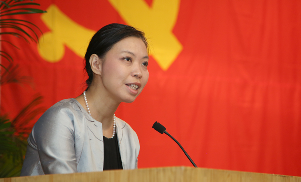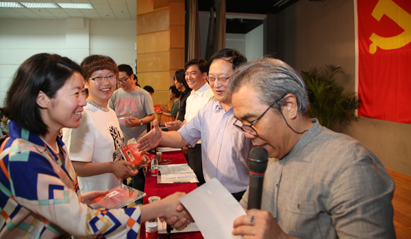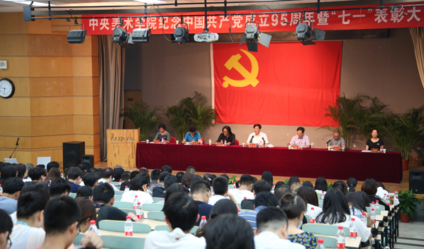 设计学院教师党员林存真、造型学院学生党员徐乙宁作为“优秀共产党员”代表先后发言,从各自的教学创作、学习生活体会出发,表达了对党员身份的认识和发挥党员作用的感受。