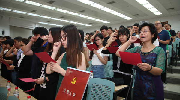 95名新党员面对党旗庄严宣誓