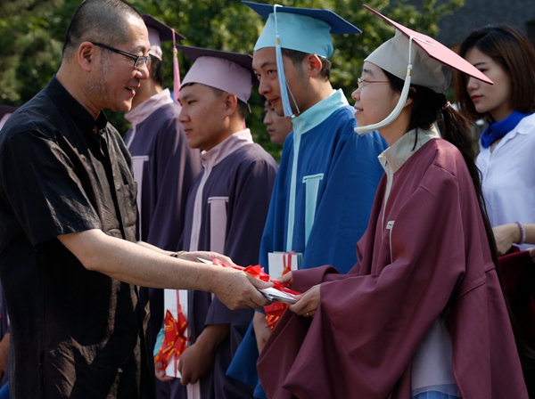 范迪安向毕业生代表颁发毕业证书