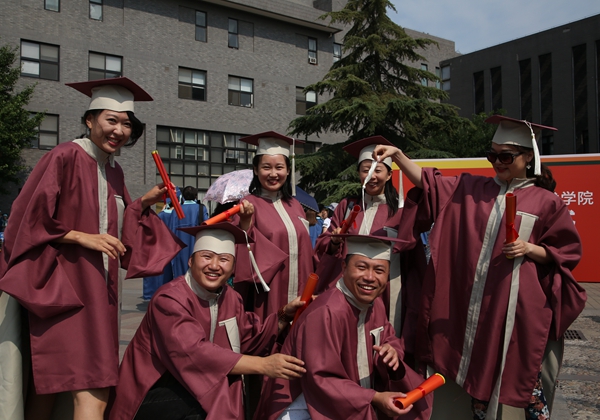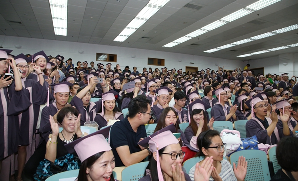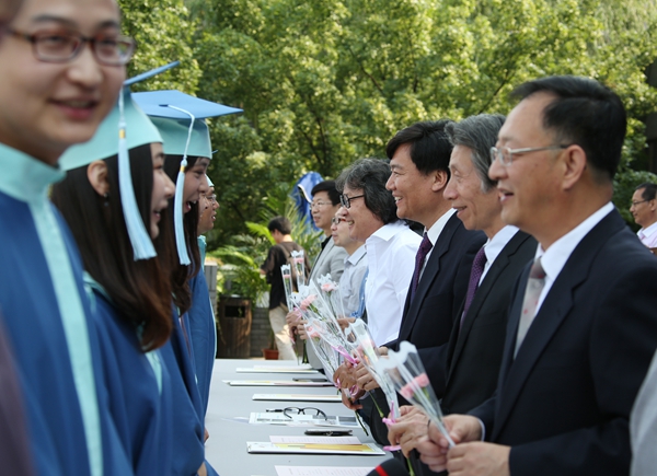 毕业典礼后,学位授予仪式在北区礼堂举行,学院领导及学位委员会委员出席仪式,为毕业生们扶正流苏。