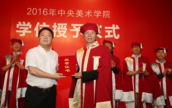 范迪安院长为全资捐助今年学位服的金恒德集团有限公司董事长周金法先生颁发捐赠证书