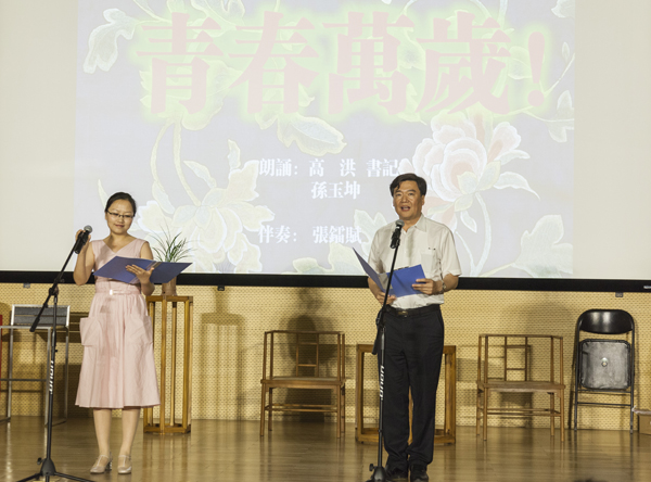诗歌:《青春万岁》(王蒙),朗诵:党委书记高洪、人文学院孙玉坤