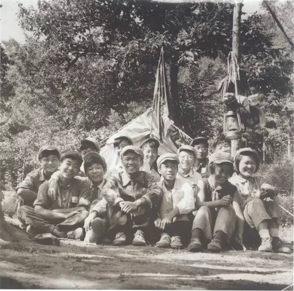 1961年丁士中带附中1963届学生暑假野营。前排左起 郭保寨、欧阳兴义、丁士中、张为之、陈爱康、刘昌玲。后排左起 朱俊贤、郭怀仁、姜渭渔、梁乐山、周松豪、郝军朋、汲成